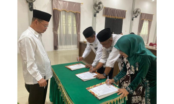 Melawi (Kemenag Kalbar) – Kepala MTs Negeri 2 Melawi, Wiwik Setiyorini, menandatangani Perjanjian Kinerja dan Pakta Integritas Tahun 2026 di hadapan Kepala Kantor Kementerian Agama Kabupaten Melawi, Anuar Akhmad, pada Sabtu (03/01). Kegiatan tersebut turut disaksikan oleh Tim Humas Kemenag...